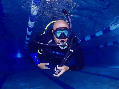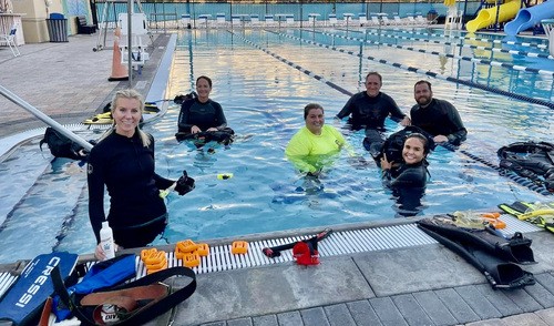 The in-water portion of you SCUBA course starts with your pool sessions. Our pool sessions are held at St. Pete Beach Aquatic Center, located at 7701 Boca Ciega Dr. St. Pete Beach, Fl. 33706. The pool is a junior olympic size pool that is heated / cooled to 82 degrees. We have access to the pool after their normal business hours so we are not interupted by other users of the facility. There are changing rooms and hot water showers.