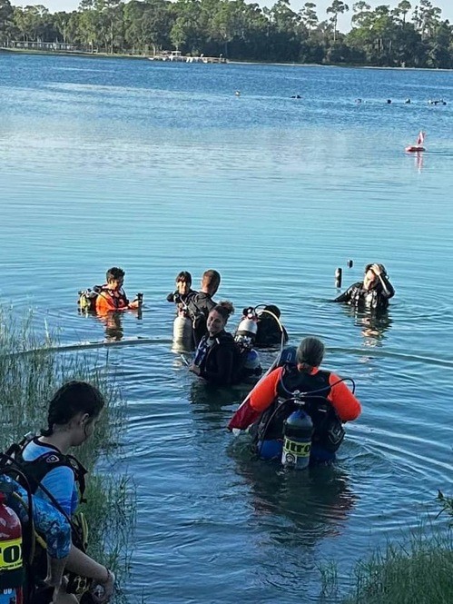 You are learning a whole new set of skills with SCUBA. At Lake Denton, there are no time constraints, we can take as much time as needed to make you feel comfortable in the water. Lake Denton can be described as big pool with fish. It has an easy entry with a gradual slope to depth. This gives us the opportunity to make adjustments to students gear such as proper weighting and gives the student time to work on equalizing their ears and learning proper buoyancy techniques. At Lake Denton, we will cover all of the skills for your SCUBA certification. The student can concentrate on their skills and not add the extra stress of a long boat ride, being rushed through skills and not given the time to actually SCUBA dive.